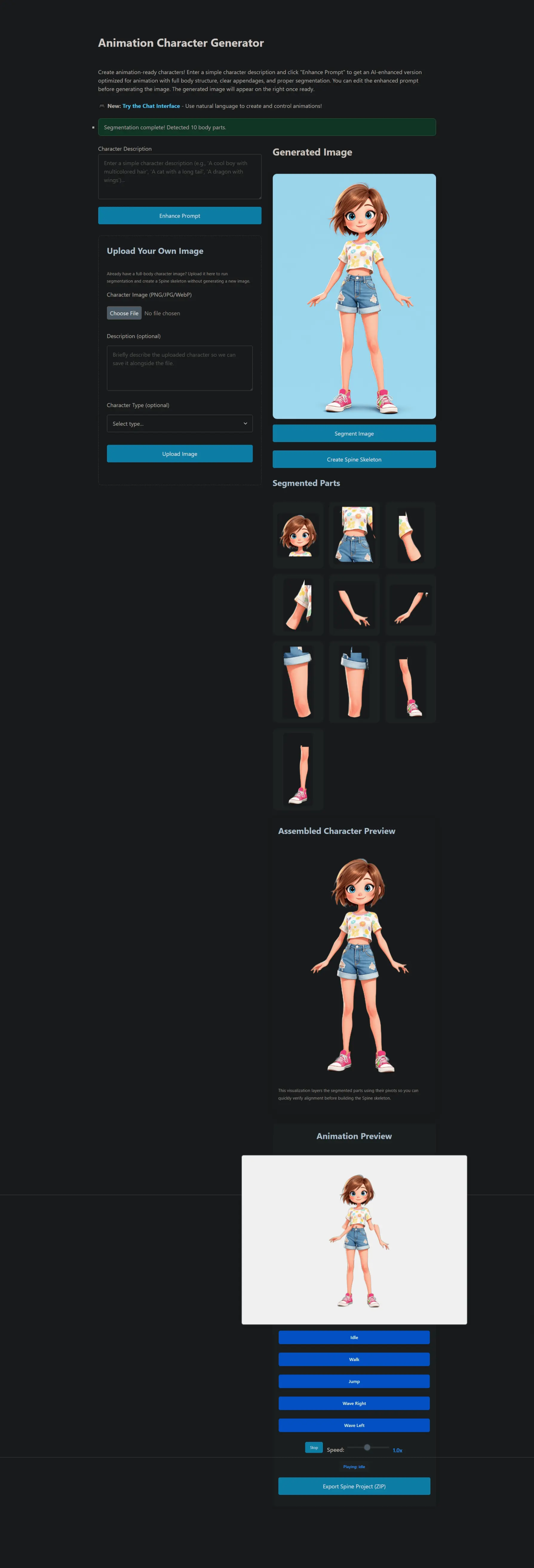 So I started building exactly that. A UI-powered tool that allows anyone to generate Spine2D-style animations using AI prompts.