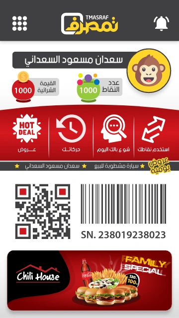 Users can create a new account in Tmasraf customers application to access its features. Once users create an account they can start collecting points.